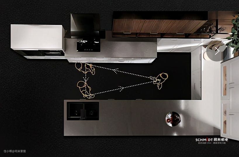 好用的厨房,动线一定得合理。厨房动线无非就是“取-洗-备-炒”,根据这个流程来有效规划空间,可提高下厨的效率以及烹饪的流畅性。