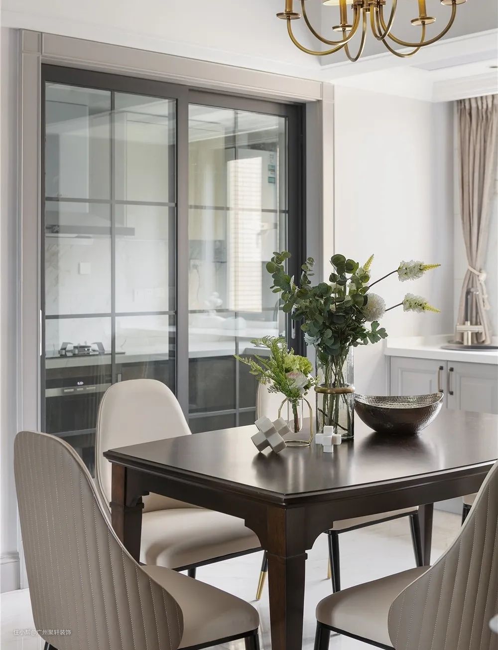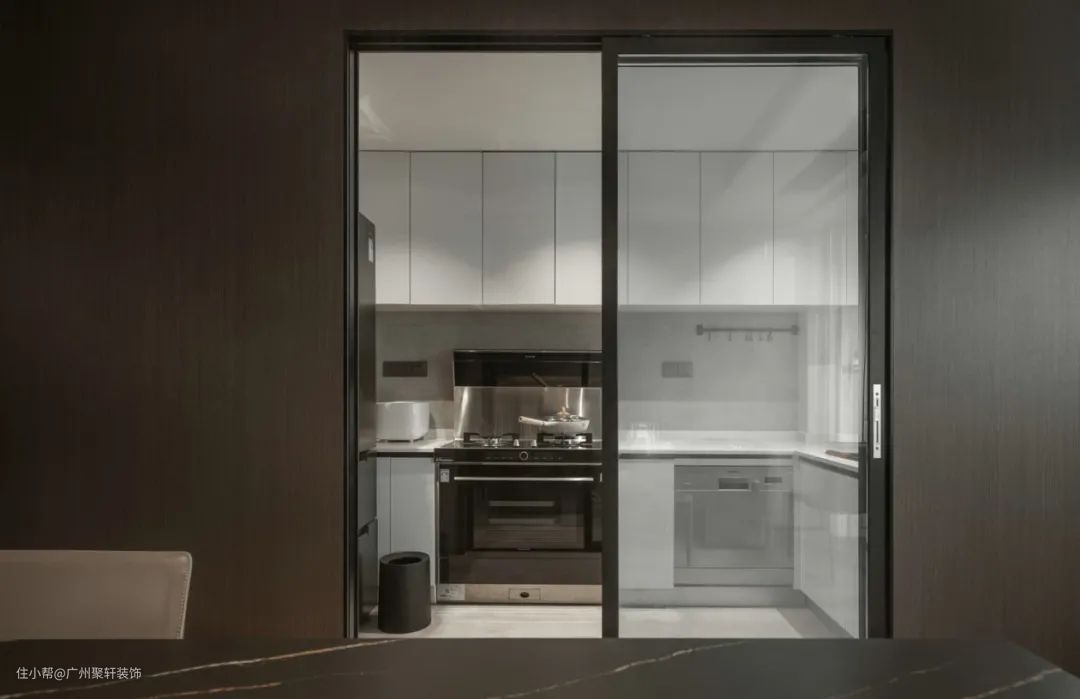 在中厨与西厨之间用玻璃门进行隔断,保持两个空间通透明亮。