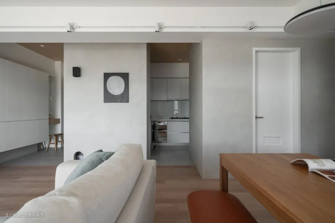 不使用中厨时关门将其遮住,只露出西厨部分,井然有序;而需要使用时则打开门板,收放自如。
