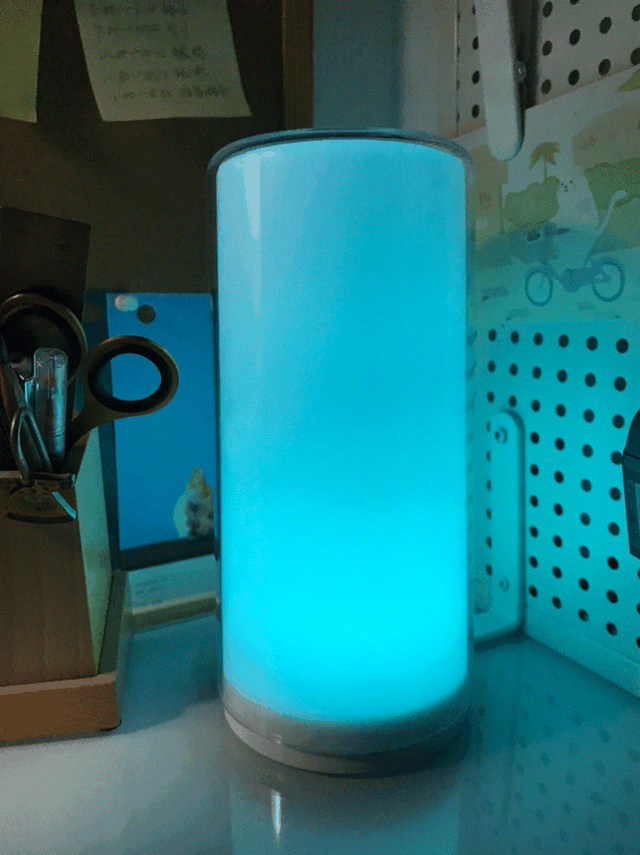 ▼这款灯的操作方式大家已经很熟悉了,通过按住顶部按钮旋转外部灯罩就可以切换五彩缤纷的颜色,也可以通过米家app来进行控制。