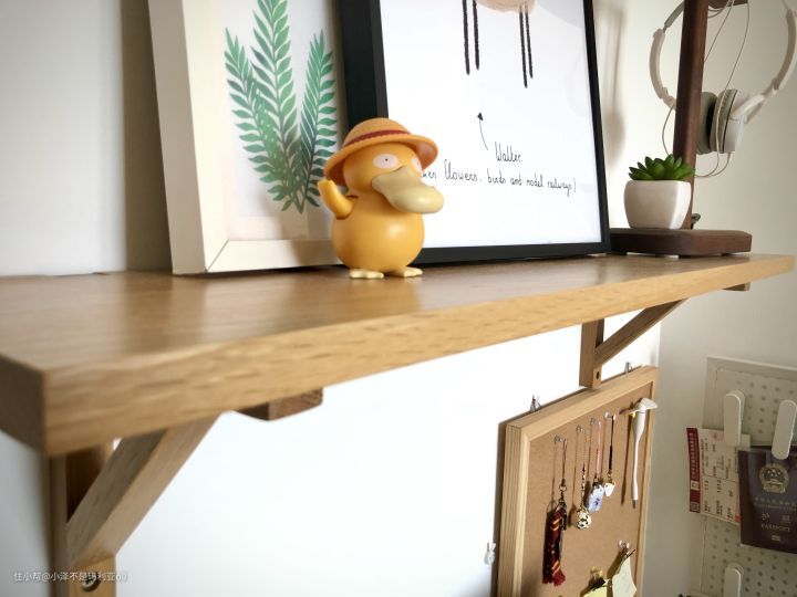 ▼白橡木材质的一字隔板,大家在选购墙面隔板的时候一定要选小泽家这种使用三角形支架支撑固定的隔板,不要选择那种用膨胀螺丝直接插入固定的隔板,否则时间久了就会有下坠的现象。
