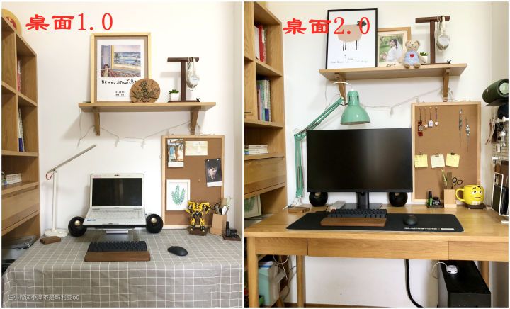 文章开始之前先纪念一下曾经的1.0版本和2.0版本的书桌,可以看到在1.0版本的基础上,2.0版本主要对pc和物品的收纳进行了升级。目前的书桌小泽命名它为3.0版本,新版本的书桌都做了哪些哪些改造呢,跟着小泽一起来看吧~