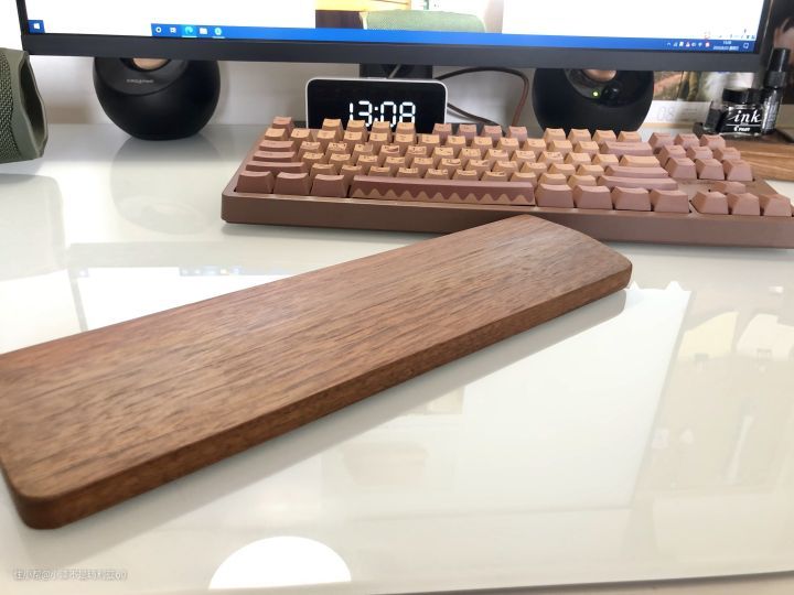 ▼前文中提到过,以前给61键键盘订做的胡桃木键盘托,现在给87键键盘用了,虽然有点短但也不打算再换了,每隔一段时间就会用木蜡油打一打,保持木料的光泽度,久而久之也成了一件充满仪式感的事情。