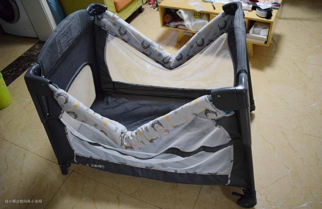 最近带宝宝回老家办百日宴,给宝宝换尿布或是逗引宝宝的时候都得把宝宝放在床上,弯着腰真的很容易累,当时有点后悔尿布台没带回来,其实带了得话后备箱也不一定能装得下。后来看到了贝影这款便携式折叠多功能婴儿床,占地空间小,可以拎着走,拼接速度快,挺适合我们的蜗居。