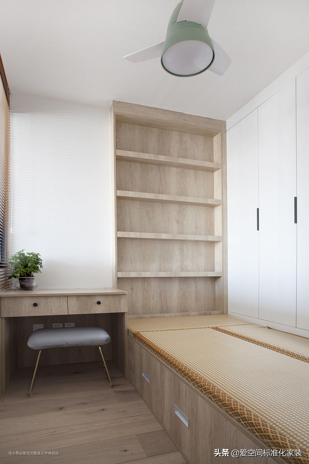 业主家的老人更喜欢贴近自然的居住空间,所以布置成了榻榻米样式的,收纳也足够大。