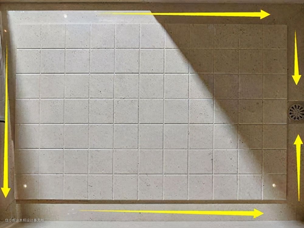 为了解决这个问题,淋浴房地面出现了拉槽大理石的做法。其实就是将整块的大理石表面,用机器进行拉槽加工,将其铺贴在淋浴房的中心,周围会有一圈导流槽。