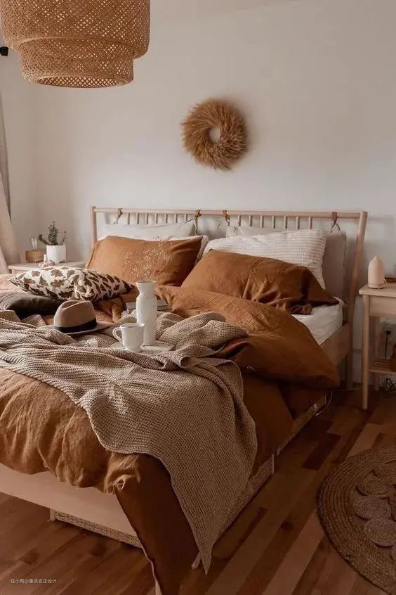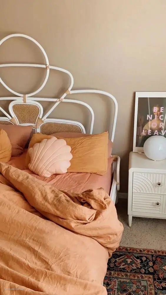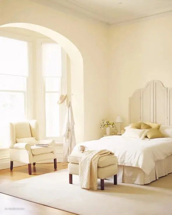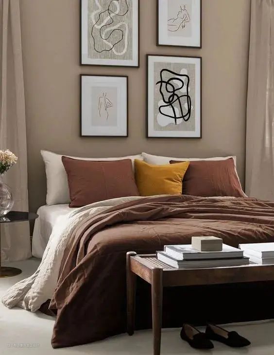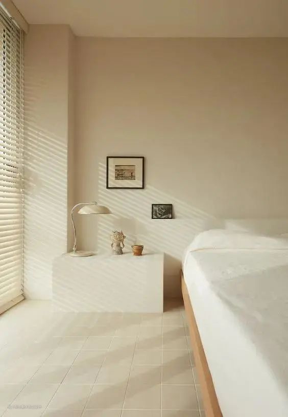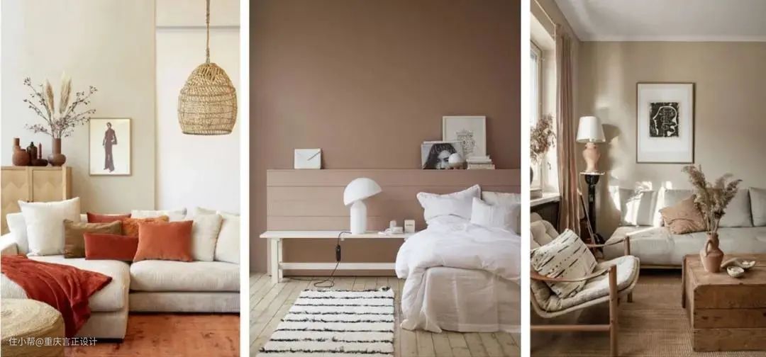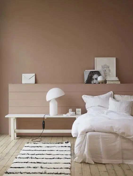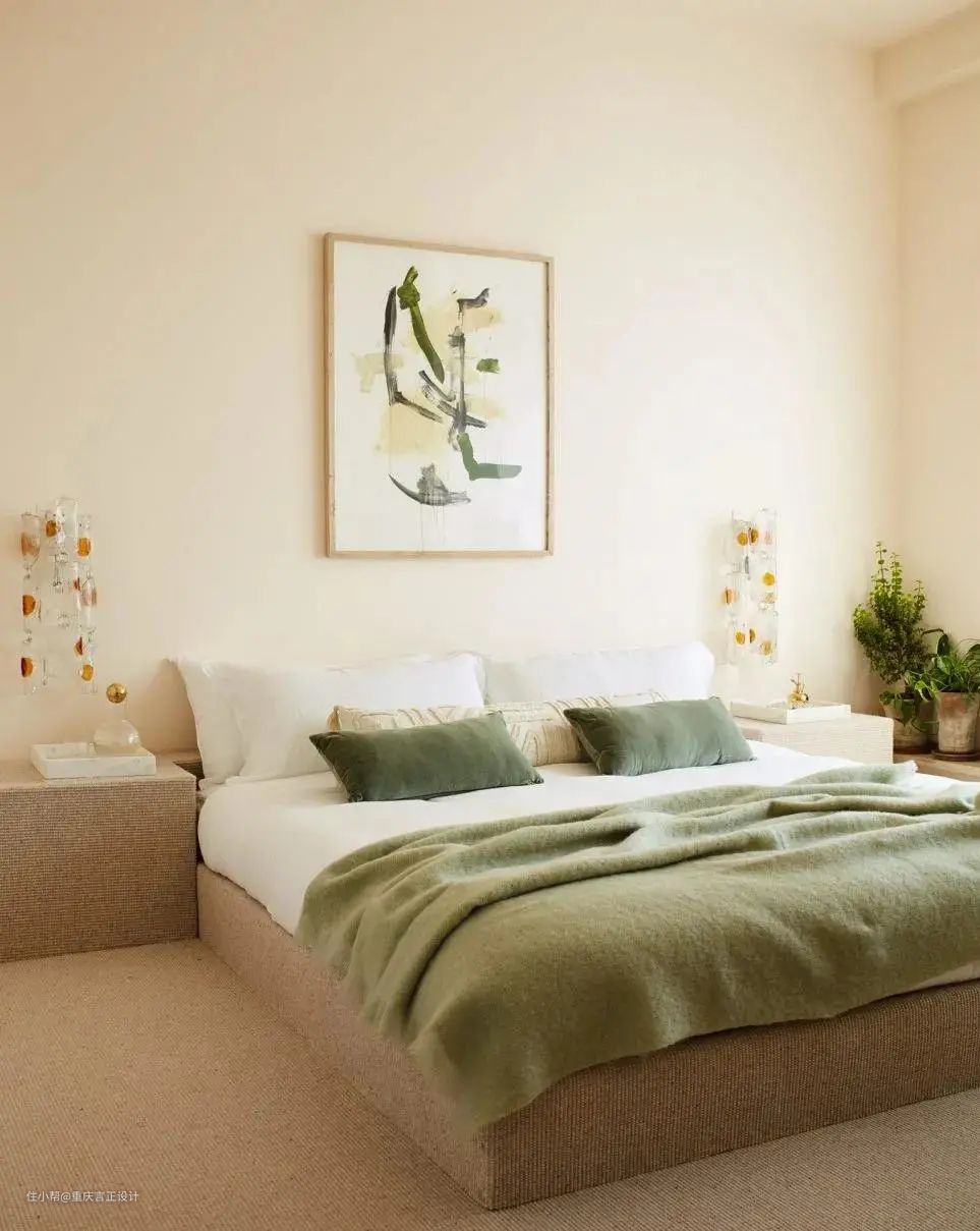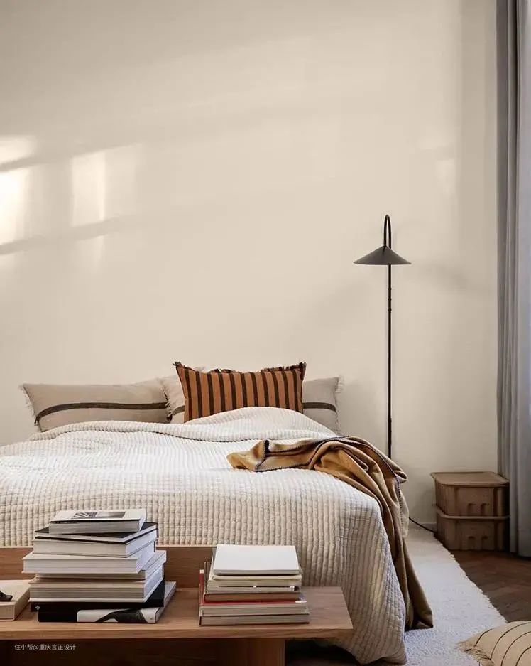 因为颜色较浅,治愈感十足的奶茶裸色,营造出一种宁静的氛围,非常适合运用在卧室区域。