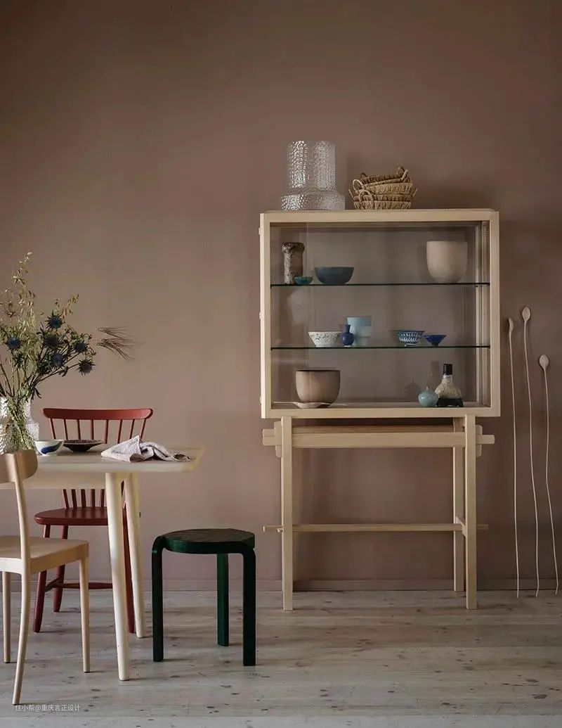 自带高级感的奶茶裸色墙面也很适合衬托装饰摆件和家具。