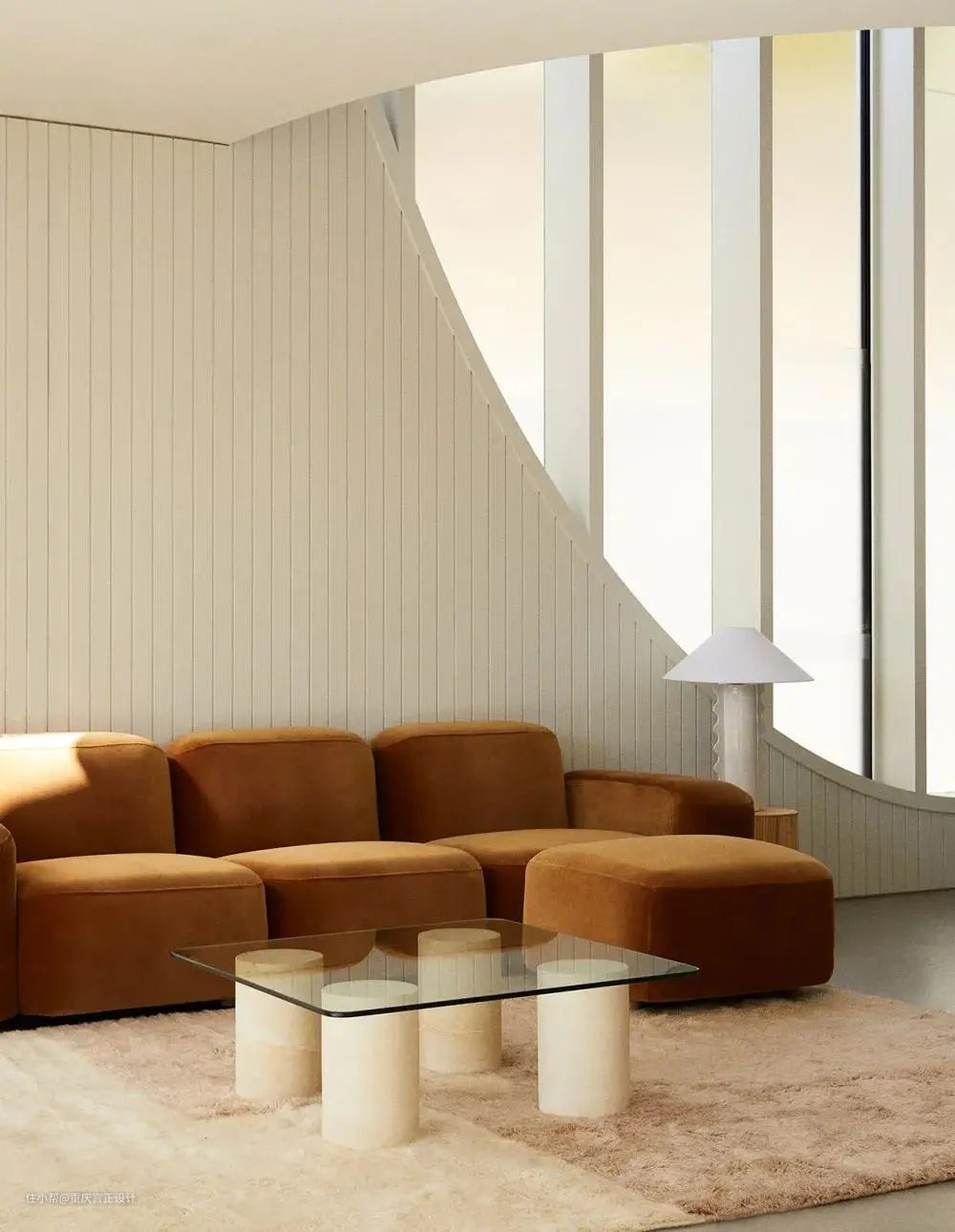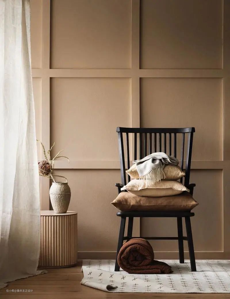 纯净的奶茶色饱和度较低,自带一种高级感,而运用在家居空间时,温暖的调性充满了治愈,温暖又耐看。