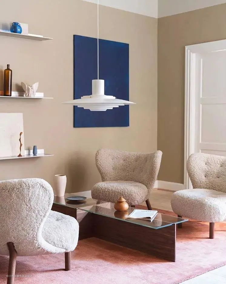 而加了更多牛奶的奶茶,颜色变得清淡了许多,偏向于裸色,但运用在室内设计的时候,于淡雅中透漏着温暖,还带有一丝甜美和复古的味道。