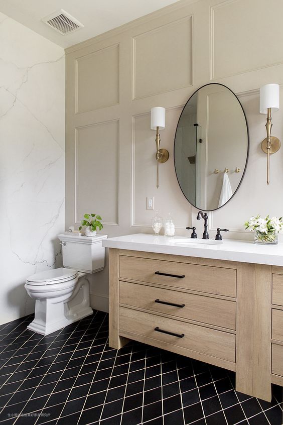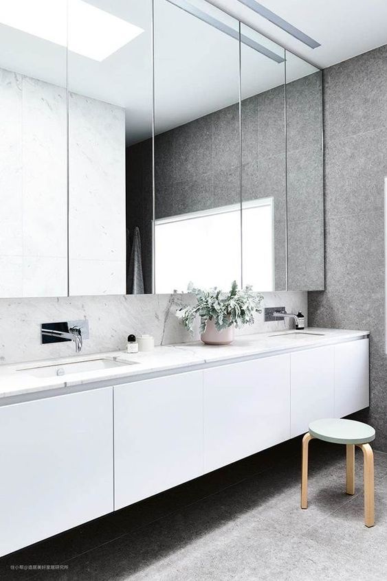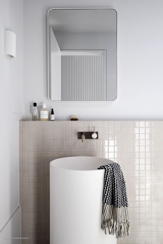 镜子是卫生间必不可少的单品,同时还是扩容视线,折射光源的利器。可在适当的位置加设镜子元素,一样能达到补光的效果。