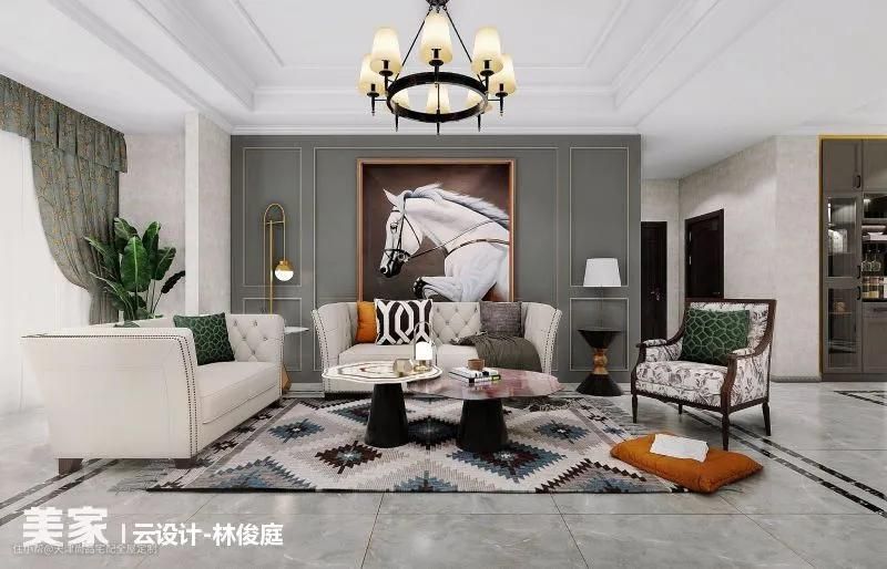美式轻奢风是在美式简约风的基础上追求高品质生活,色彩相对传统美式更加干练,年轻化,家具选择也更具包容性。