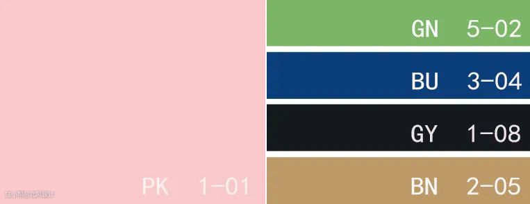 色卡:水晶玫瑰色+草绿色+米克诺斯蓝+纯黑色+淡金色