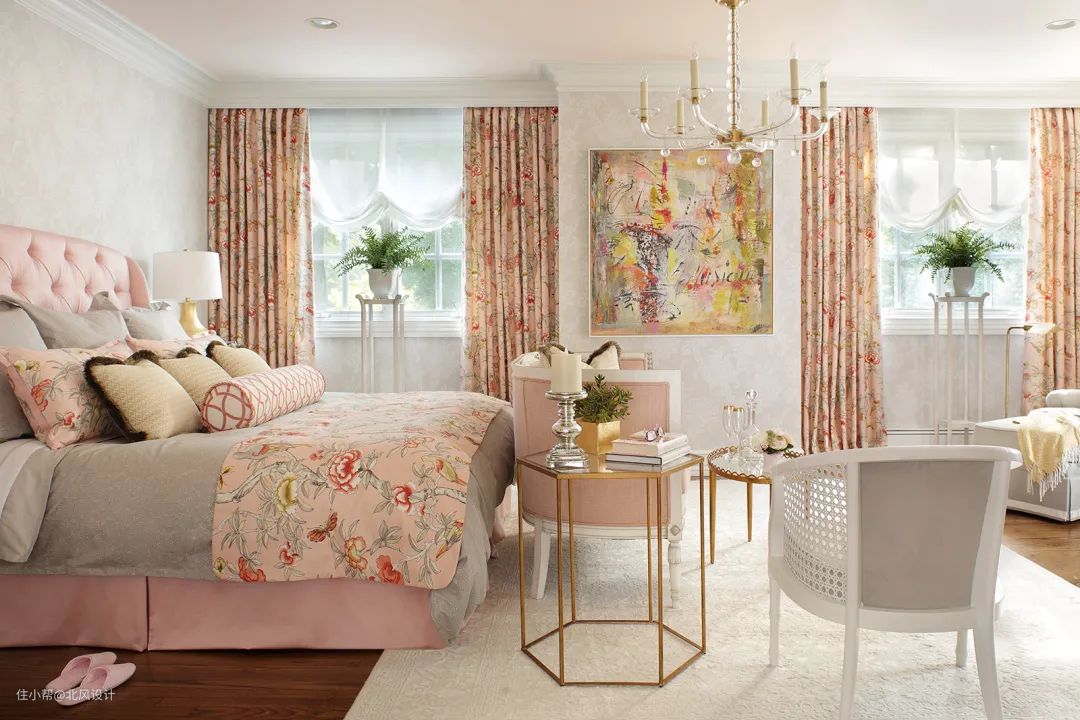 水晶玫瑰色的颜色带一点红,散发着天真烂漫的纯洁之感,若有似无的一丝可爱性感隐藏其中,它比较适合用于装饰成年人与少女通用的公主房。大面积地温柔渲染,丝毫不显锐利张扬,反而让空间如若弥漫着源源不断的花香。飘窗、落地窗,布艺花纹以及内饰陈设,皆以简单仍不失饱满的组合形式呈现。银白色承担搭载粉色调的最佳媒介,恰到好处的治愈感和温馨气息能透过宁静的氛围缓缓地释放。绵柔轻纱和羊毡草席皆传递无比舒缓的轻松愉悦之意。