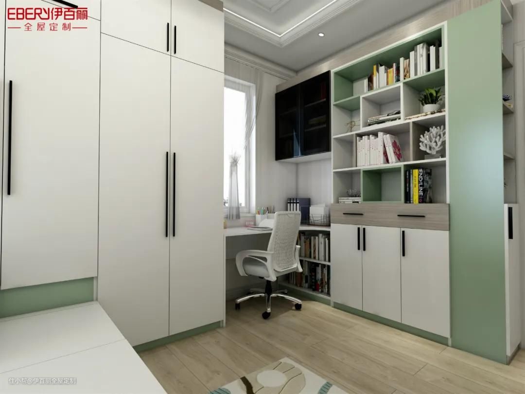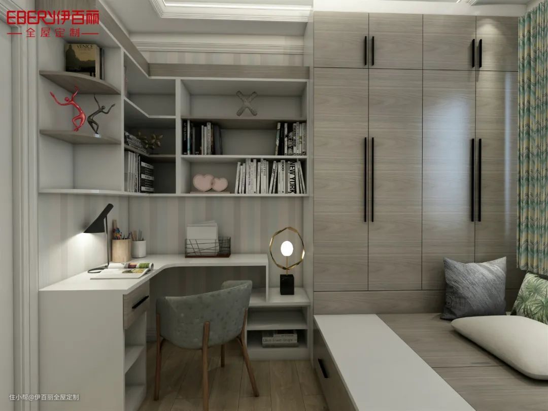 整个房间还可作为多功能书房来使用。