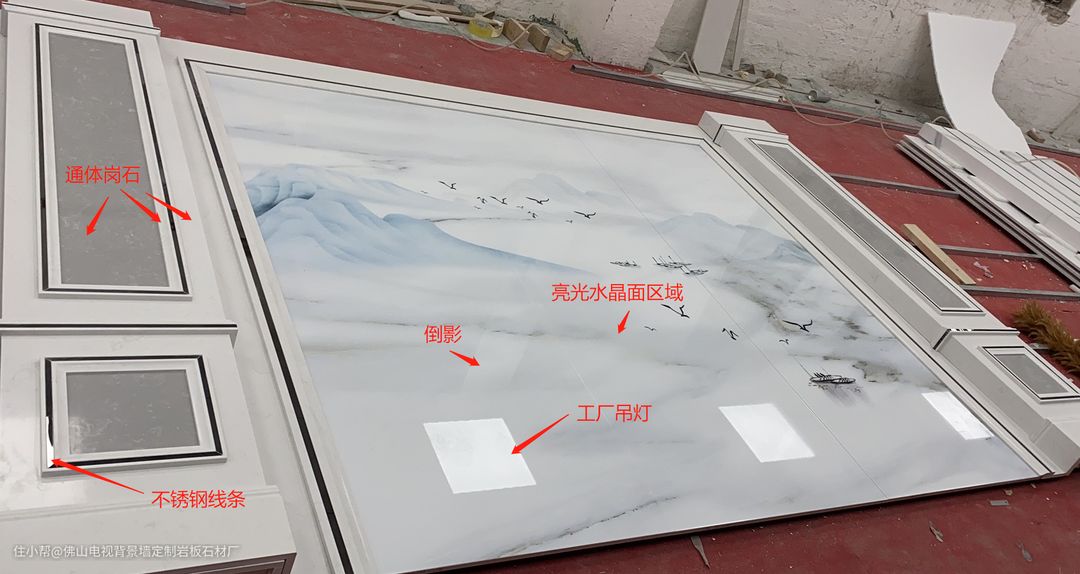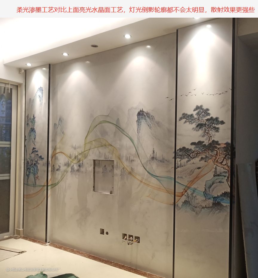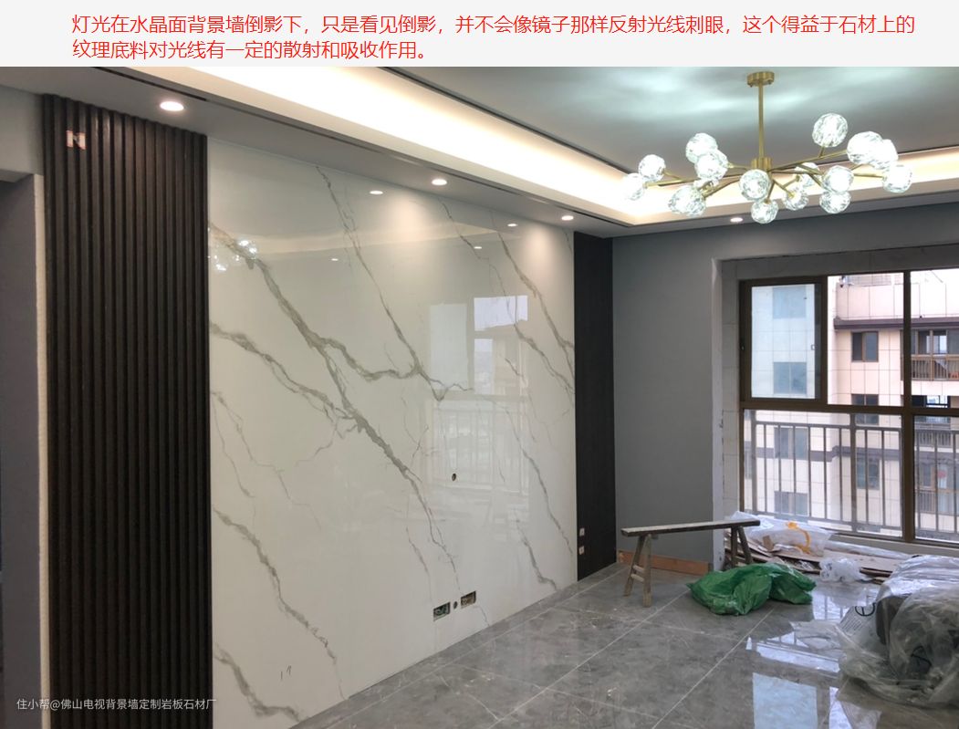优点:反光柔和,对光比较敏感的朋友可以考虑用这个工艺;由于柔光表面没有晶体,如果有磕碰破损,安装师傅用调和材料修复一下,相对容易些。