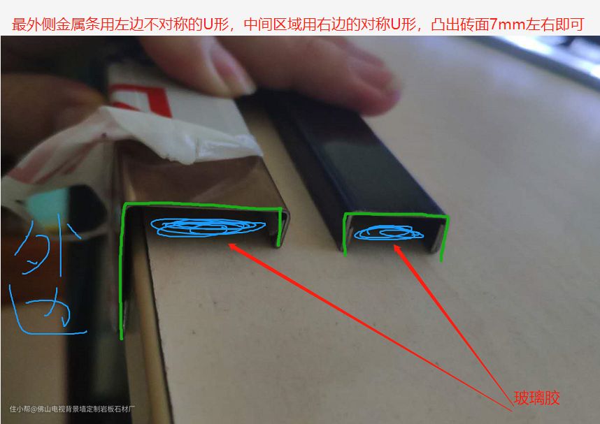 ②铝合金条:有亮光和亚光两种,大部分工厂会用这个材料,因为施工制作容易些,铝合金的亮光会类似渗墨大板那种柔光,不会太亮。
