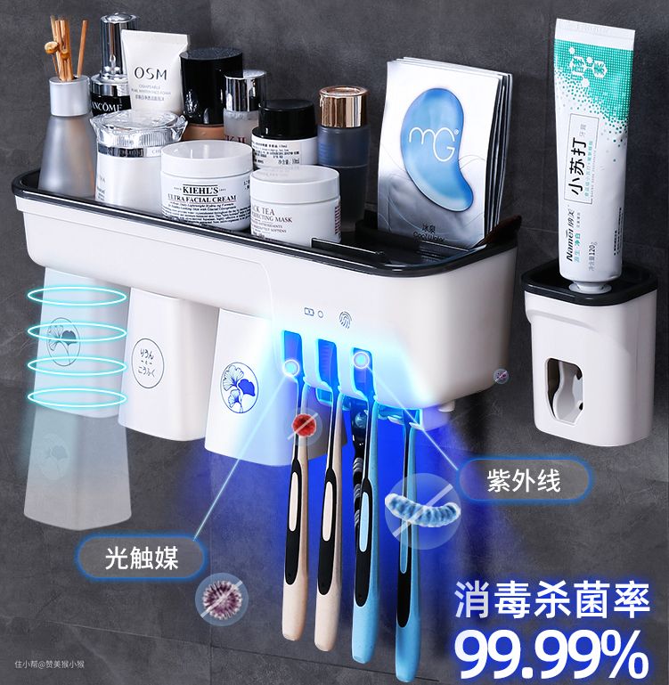 每天早晨都像打仗一样的洗漱准备吗?牙刷在厕所潮湿环境下经常发霉发臭吗?牙膏每次用完了后盖子总是找不到吗?这些日常生活中的常见痛点往往是我们不怎么注意却切切实实会浪费我们每天早晨宝贵时间的一些细节。大部分家庭的厕所都很难做到干湿分离设计,因此牙刷等贴身物品就难以避免的会滋生细菌,从而影响我们的口腔健康。这款天猫精灵智能牙刷消毒置物架就是一款彻底解决以上烦恼的黑科技好物。