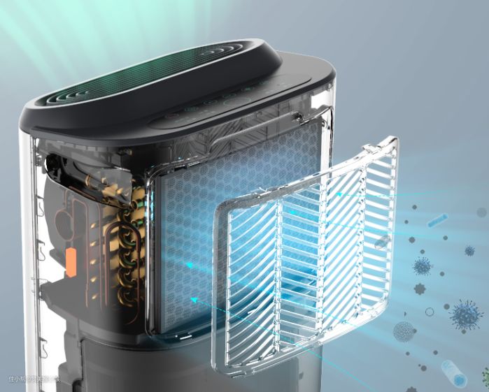 ▲即使面对装修污染,也毫无压力,其内置的活性炭滤网可以有效吸附污染气体。