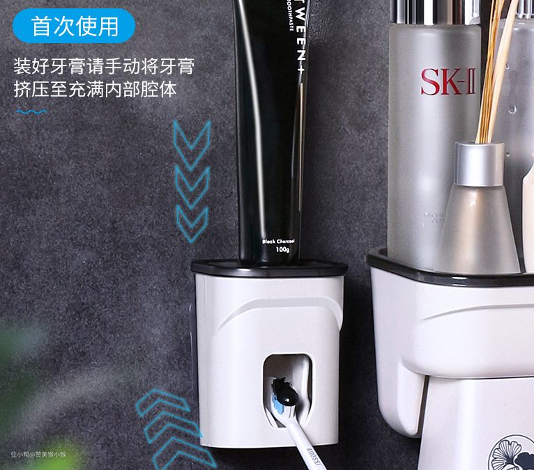 ▲ 自带单手牙膏挤压装置,只需要将牙膏卡在上面,每天使用时就可以单手操作挤牙膏动作,节约了打开牙膏挤牙膏,关上牙膏盖的过程,同时也节约的牙膏的使用量。