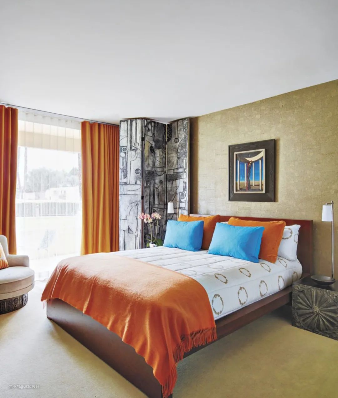 爱马仕橙的奢华感让人向往,但用好它并不容易。作为大面积的背景时,与浅淡的灰色系搭配,点缀蓝色,营造海岸感觉;作为点缀色,可以选择灰色或白色的空间背景色,后者的百搭特性可以让你在搭配爱马仕橙时,少了许多顾忌。