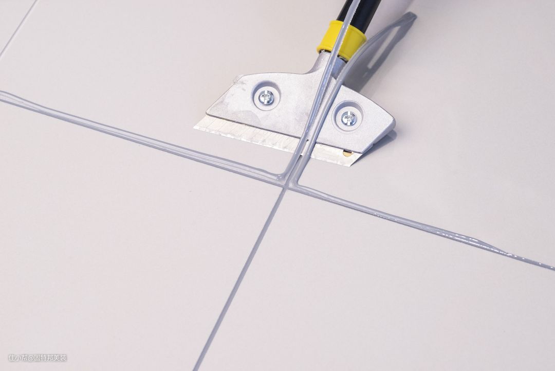 清除瓷缝周围及缝隙内泥尘,用清缝刀在瓷缝内及瓷砖跨缝处平铲或刮推,确保瓷缝清洁,特别需要注意瓷砖边沿清理到位,防止施胶后出现黑边的现象。