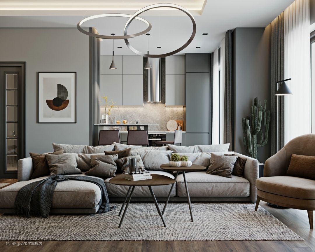 浅棕、橘红、爱马仕橙等配色适合简欧和北欧风的客厅,再搭配冷色调的挂画或者抱枕营造温馨舒适的客厅氛围。高级灰色系适合现代风和极简风的家装风格,再搭配颇有设计感的北欧茶几,调性十足。