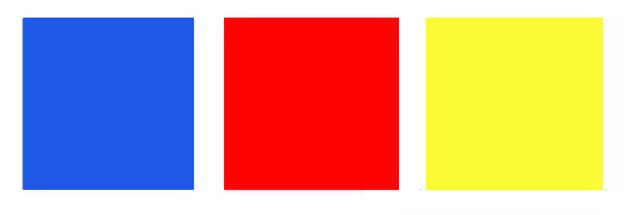 「三原色」:色相环上的颜色都是由红、黄、蓝三种颜色构成的(当然,这里只是将的色料三原色,色光三原色另论)
