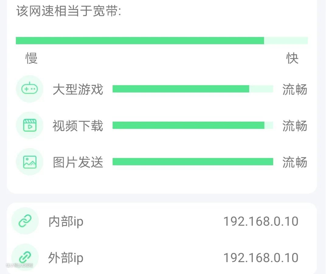 最后我又把手机拿到楼道,走道电梯处进行了一次测试,我们家是两梯五户的边户,隔着很多墙并且距离也不近,但是信号依旧很好。