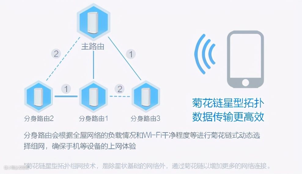 而Mesh简单来说就是利用多个分布式路由,摆放在不同位置来织成一种大型网络,不同的接入点可以用不同的方式来组合,从而组成一张网状网络。最关键的是,不但整个网中SSID(也就是WiFi的名字)是一致的,而且在使用时无线设备还能自动寻找信号最好的节点,从而进行数据的传输,这样就可以实现我在走动时,房子里的WiFi都是无缝切换的。