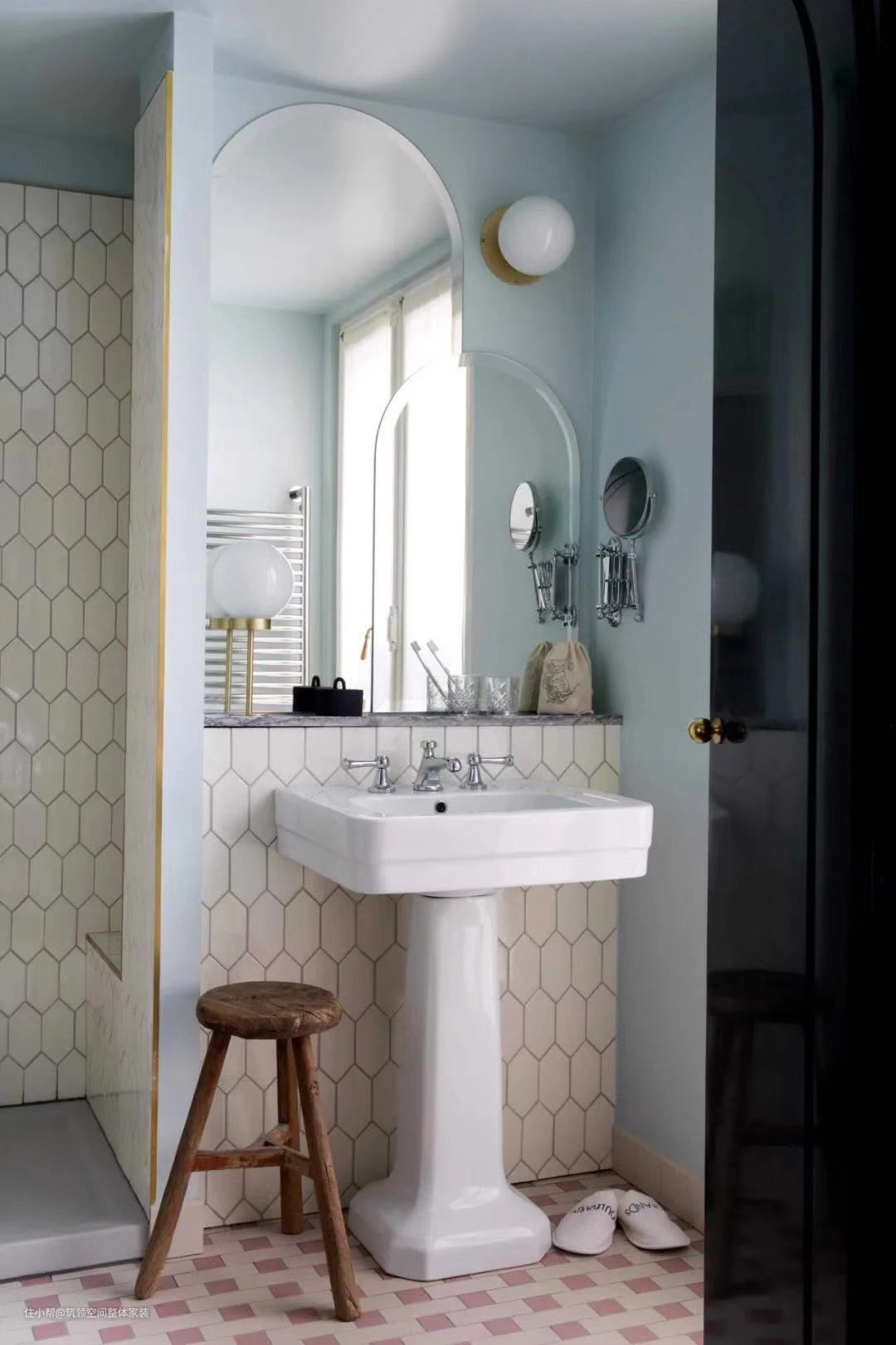 圆顶的形状是装饰艺术的主要元素,所以一定要发挥那些拱门。从镜子到门上方的窗户和大理石后挡板,这个浴室将拱门设计融入了多个地方。甚至水槽都拥有圆形的边缘,使该化妆间具有凝聚力。