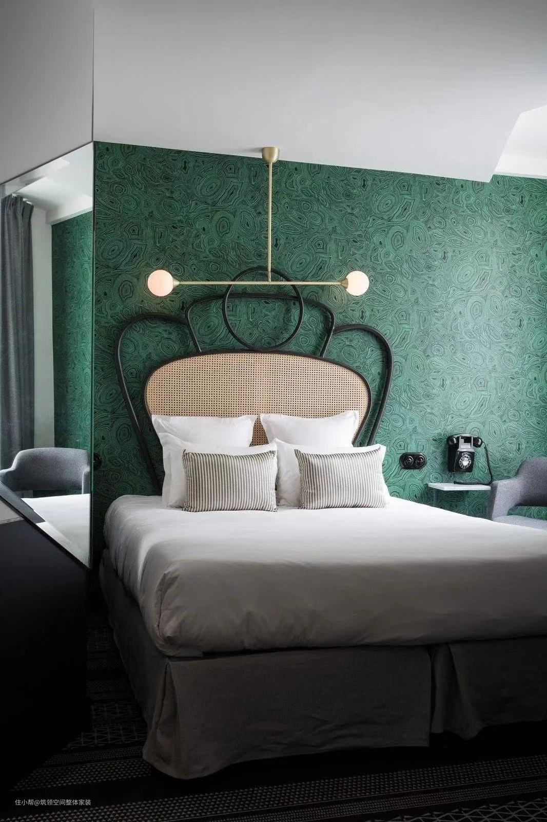 如果你想保持时尚感,则仍可以以20年代为灵感的作品来完成最终的外观。这款苔藓绿色的水平簇绒床头板带有淡淡的装饰艺术风格,让人感觉现代。