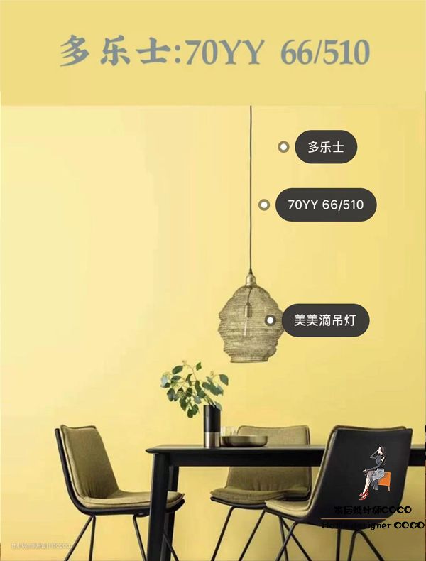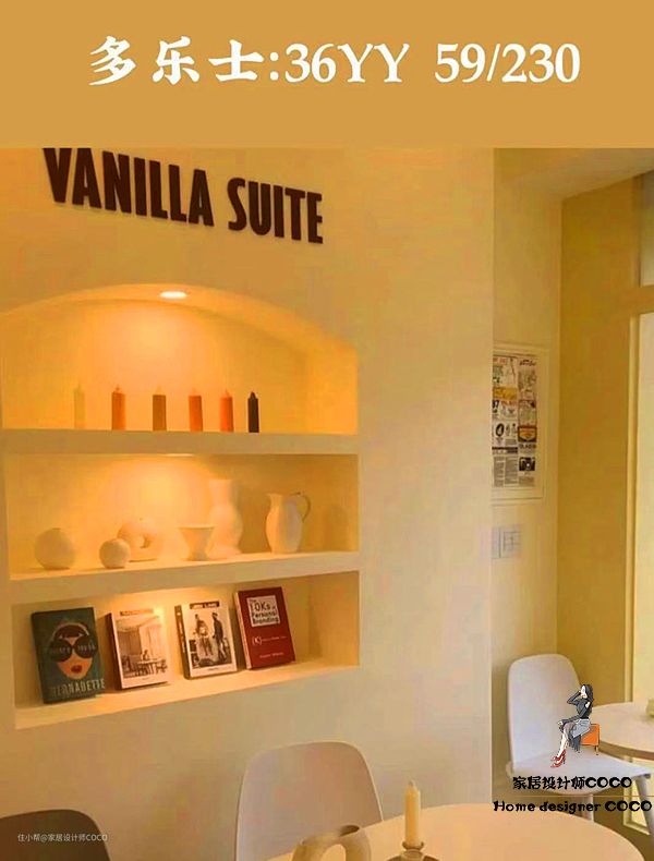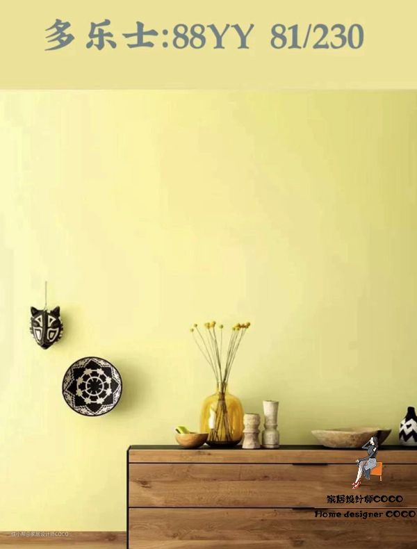 这款多乐士浅浅的大漠黄,很多小空间都在使用,非常适合小资情调的家居空间,而且很多咖啡馆或者奶茶店都在使用这种色彩来表达氛围,给人一种甜蜜的感觉。