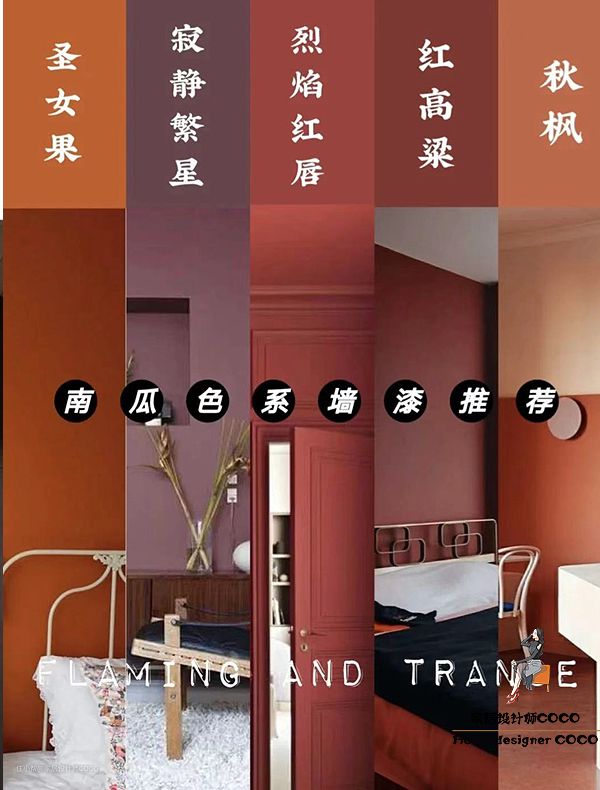 南瓜色系属于比较热烈的颜色,可以让空间变得热情而温馨,如果你偏爱橘色,可以选择圣女果或者秋枫作为单面的墙的色彩最为合适,但是需要注意的是,如果选择这款色系,其他的墙面最好好吃白色,避免造成色彩的混淆。