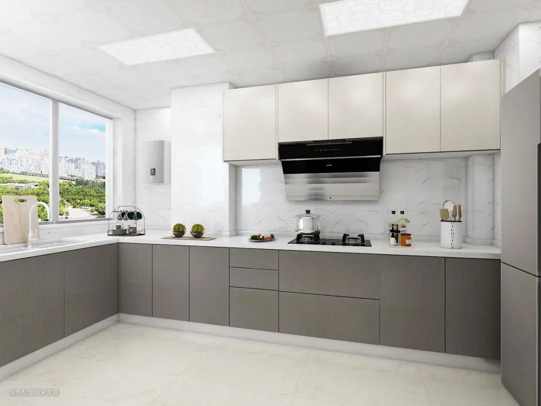 白色是比较常见的厨房台面,因其比较百搭,有油烟污渍时也能及时清洁。