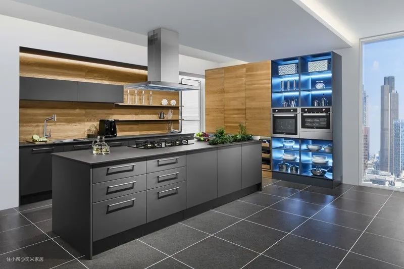 自带高级感的灰色,能够厨房给人很舒适的感觉,搭配白色、木色或者不同层次的灰色系,都能彰显厨房时尚感。