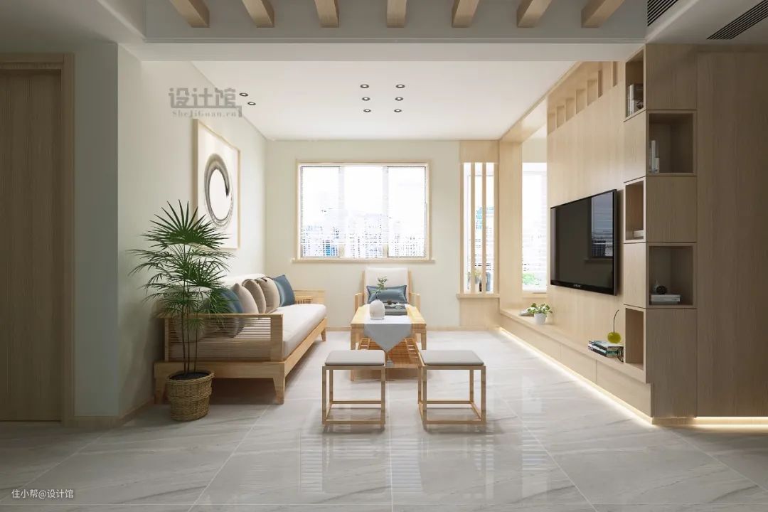 像沙发客厅之间有较大的空间,或是大门直对客厅,感觉客厅私密性较差的话,也可以在沙发与客厅或大门之间加多一个屏风或隔断柜,这个屏风或隔断柜就可以设置在沙发的旁边,这样整体空间就更加私密而又美观,如果是隔断柜的话,还能为客厅带来一个实用的收纳位置。
