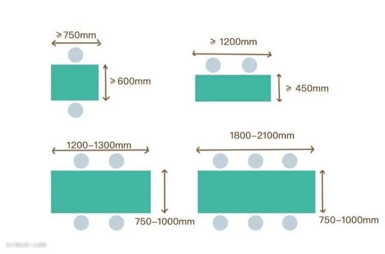 较小或较封闭的餐厅,可以选择宽度约为120x80cm的小型餐桌。长方形的餐桌常见尺寸是120x80cm、140x80cm高度一般都是75cm,餐椅的高度在40~45cm。