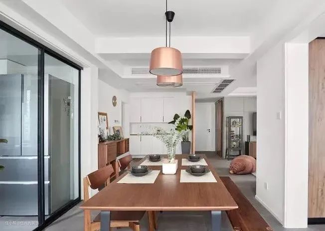 现在餐客厅的界限越来越模糊,很多观念前卫的屋主直接横一张大桌子即当作餐桌也当作工作桌,来了客人还能变成临时待客区,好方便!