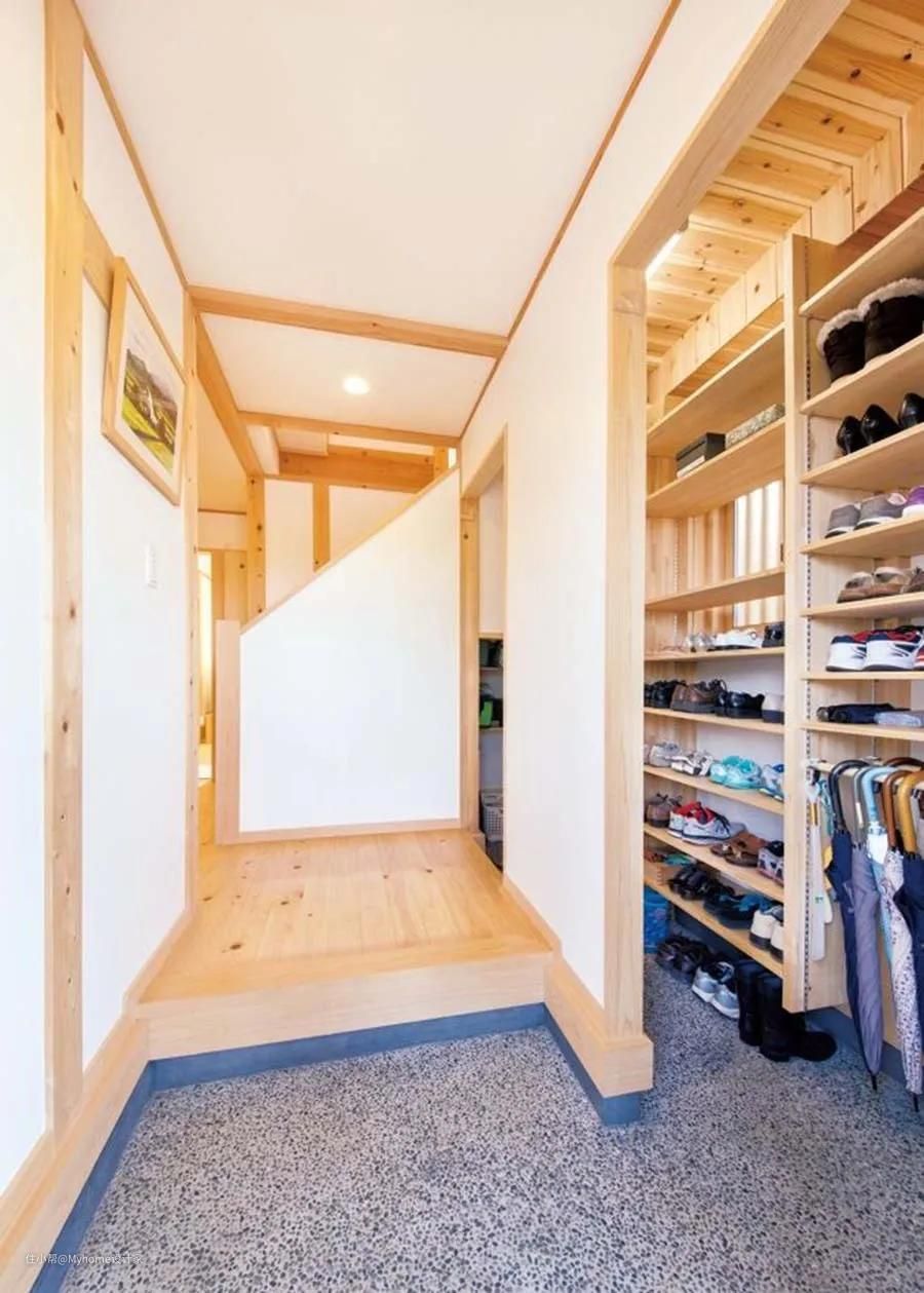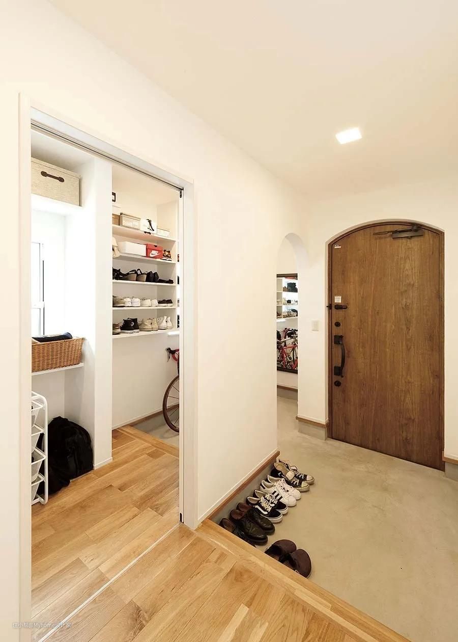 这是日式玄关最常见的布局之一,而且不同于印象中的储藏室,它收纳的东西以外出用品为主,像是外出服、鞋子、雨伞等物品,甚至宽敞一点的空间,还能放置脚踏车等大型物品。