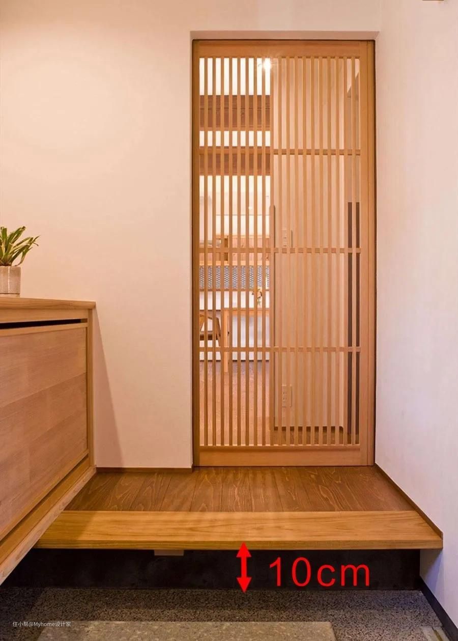 日式家居的"落尘区",多数是透过地台落差所形成;一般来说,地台与玄关的落差高度3至10厘米不等,但若要具备穿、脱鞋的换鞋凳功能,建议地台高度10厘米左右。