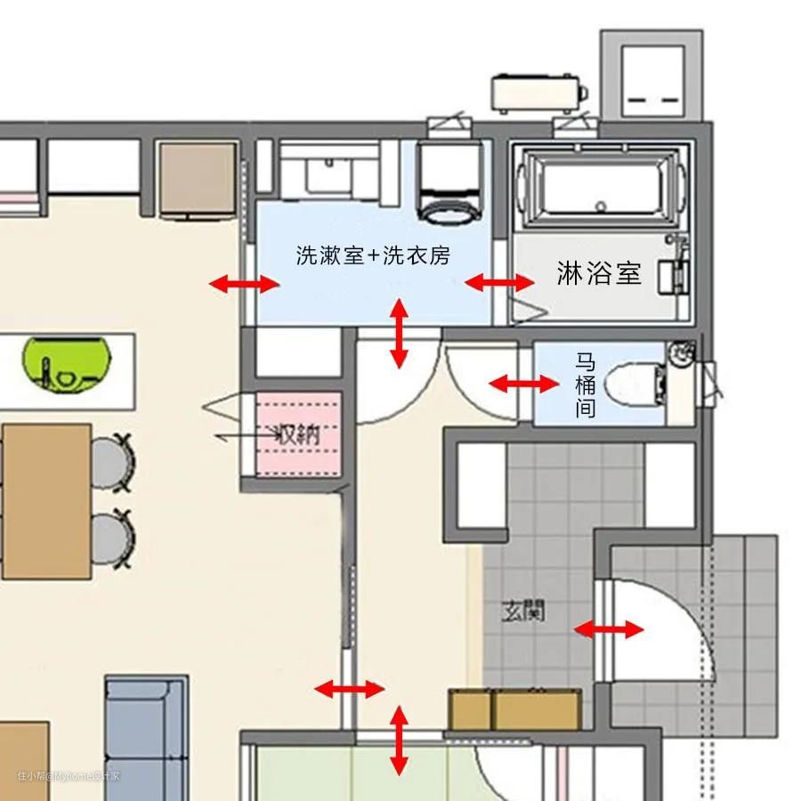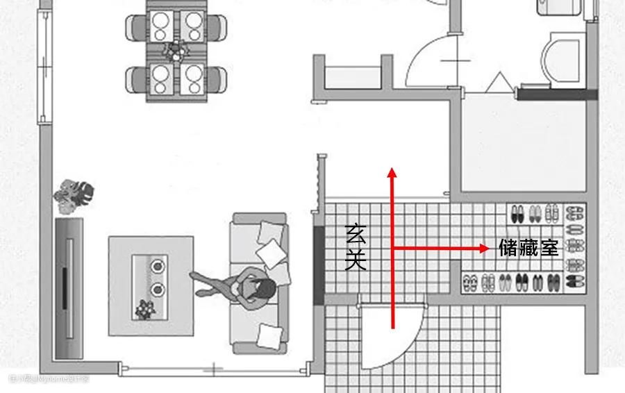 除此之外,还有动线分流的好处,降低多人同时入户或出门时的空间压力,也能好好穿、脱鞋。