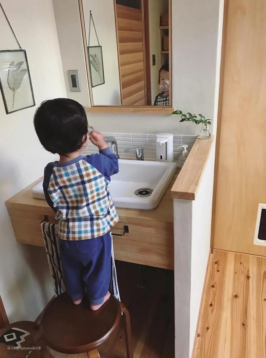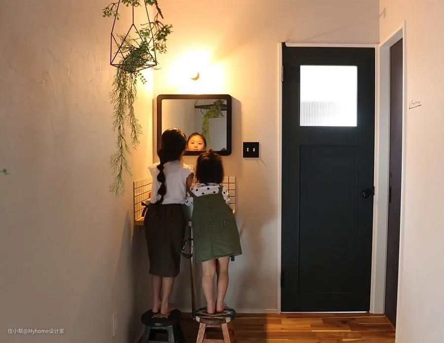 洗手、漱口是日本家庭教育里,要求小孩放学回家后要做的第一件事情;因此为了落实这件事,有些屋主就干脆将洗漱台安装在玄关旁,方便进门就洗手。