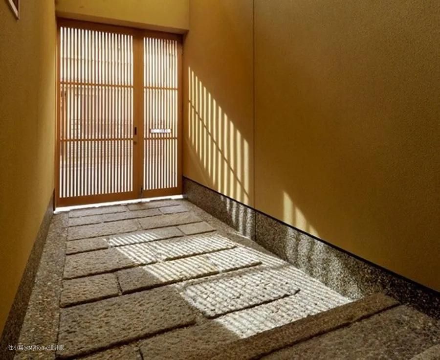 木格栅当隔断,也是日式玄关常见的设计之一;它可用于大门,或是做为界定公共场域的屏风,而且若条件允许,还会刻意安装在阳光照射处,明亮室内空间之外,也能随着光线入内的不同角度,勾勒出充满禅风的意境。