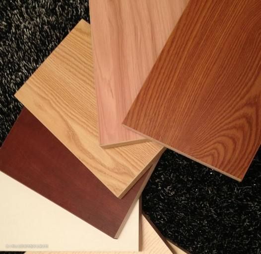(2)是将带有不同颜色或纹理的纸放入三聚氰胺树脂胶粘剂中浸泡,然后干燥到一定固化程度,将其铺装在刨花板、密度板上等。