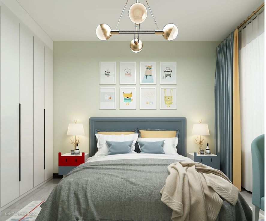 金属元素灯具,个性设计,浅色系窗帘与床,公共打造出了一个有格调、有品位的轻奢卧室,独属于个人的品味