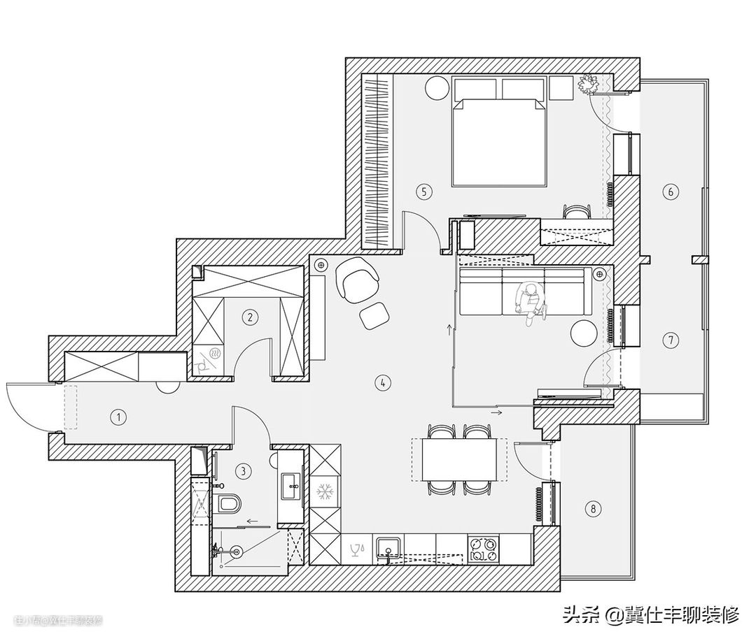 ▲ 根据户型的不规则特征,合理规划空间布局,虽然紧凑,但也尽可能留空,以免影响日常的动线。
