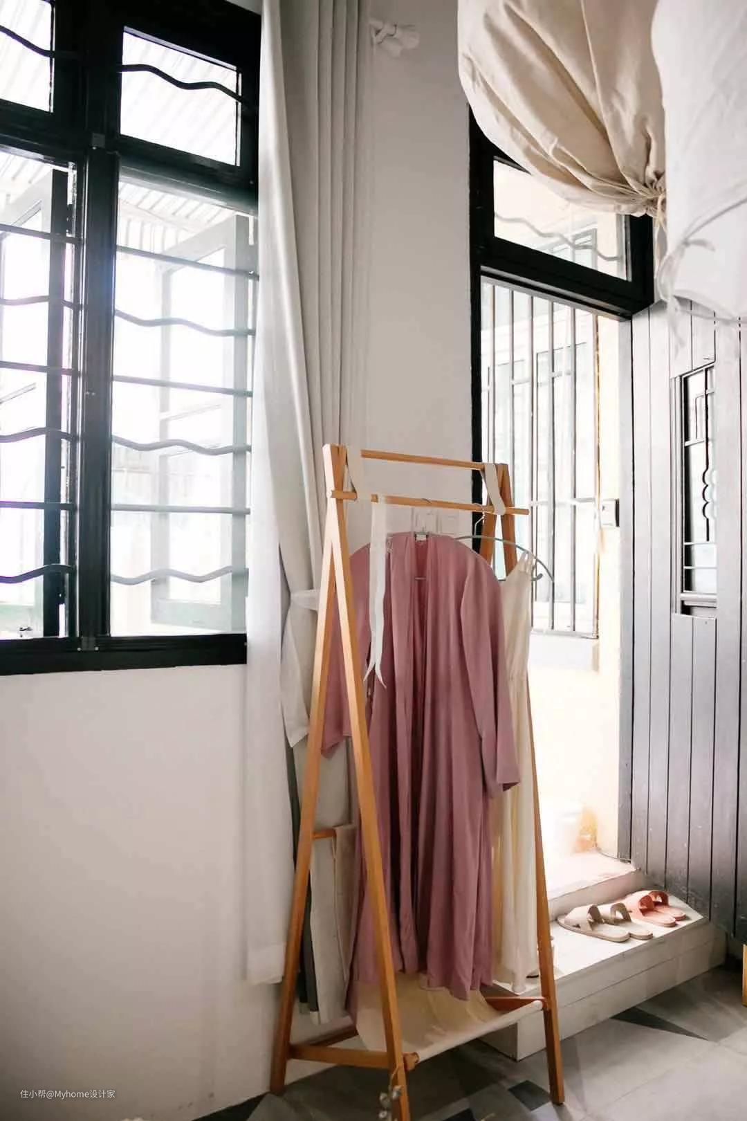 大门旁则安排挂衣架,出门用的大衣、包包都能随手搁着,挂衣架还能优雅地折叠收纳,放在一旁也不突兀。