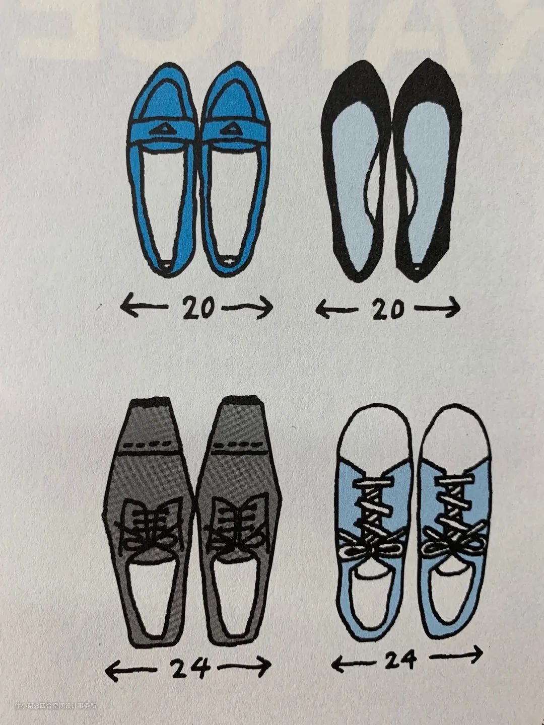 在设计鞋柜的时候,根据鞋的长度,高度和宽度加以调节,同样大小的鞋柜,收纳能力会有巨大的提高。