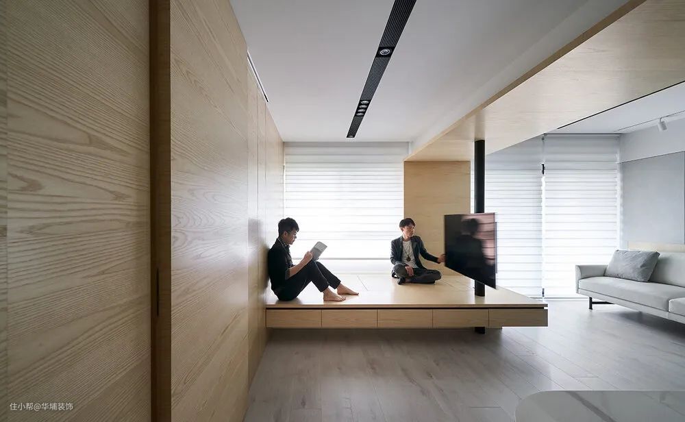 客厅空间受限无法摆放品茶区,没关系,窗前两平米,也可以拥有超惬意的品茶空间。如果是飘窗,可以直接在飘窗上定制软垫,茶桌,直接变身为茶台茶座;如果没有飘窗,可以借助窗前空间,定制高度在45-50公分的小号榻榻米,上方做茶台,下方还可以兼备储物功能。